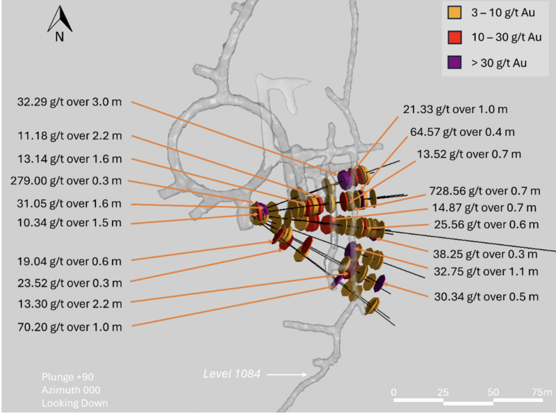 Lion One reported a headline intercept of 728.56 grams per tonne (g/t) of gold over 0.7 metres, located about 25 metres below current underground development. Other notable results include 279 g/t over 0.3 metres, 189.99 g/t over 0.3 metres, and 164 g/t over 0.3 metres.