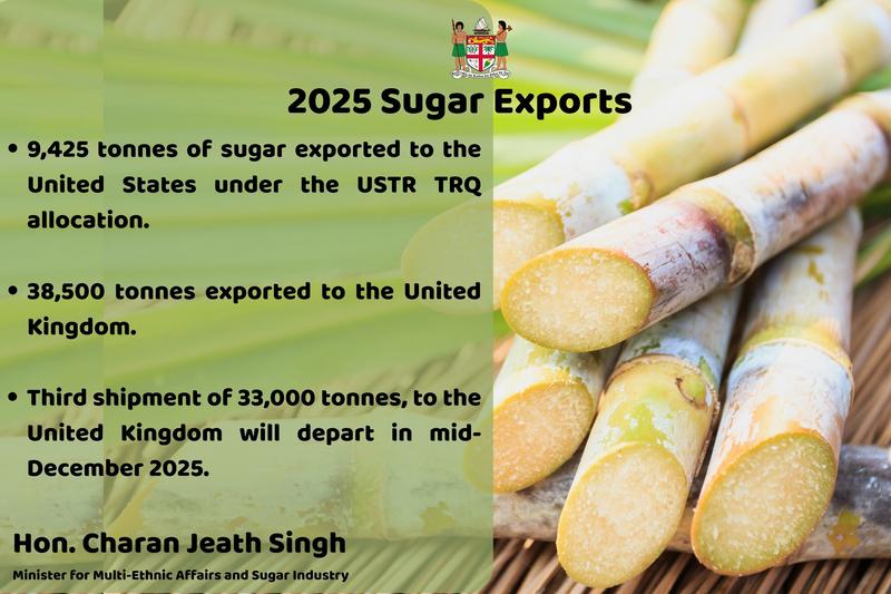 Minister Singh noted that while the U.S. market remains important, it represents only a small segment—around 13,000 tonnes—of Fiji’s annual sugar exports. Over recent years, Fiji has broadened its global presence, strengthening trade with major destinations including the United Kingdom, Europe, South Korea, Asian refiners, and neighbouring Oceania markets.